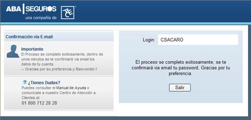 vez que se proporcione el login y la palabra clave, si es válida la información se le confirmará